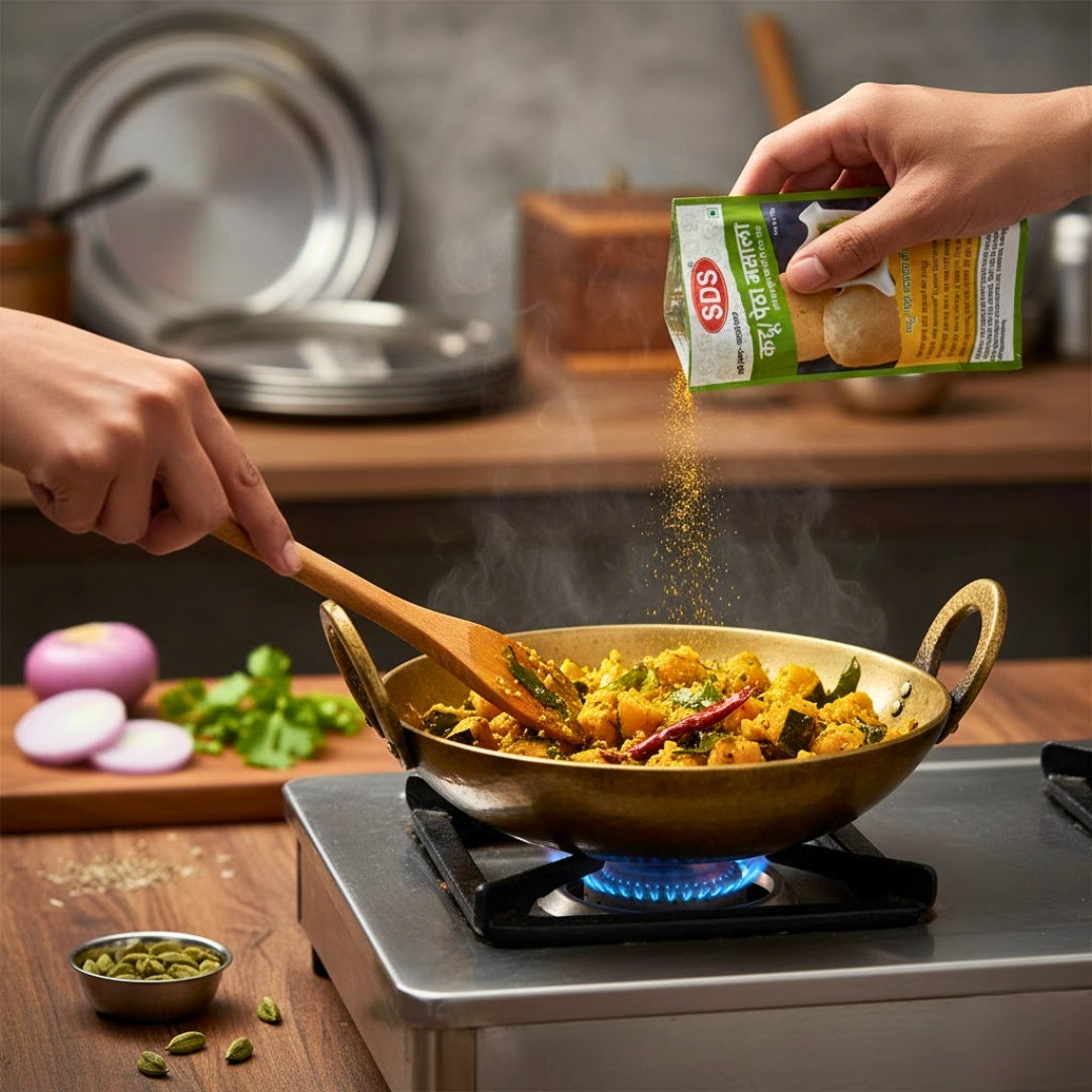 Turn everyday veggies into a flavorful affair with SDS Kaddu/Petha Masala — a deliciously curated blend of premium spices that brings the perfect harmony of sweet, tangy, and savory notes to your plate.