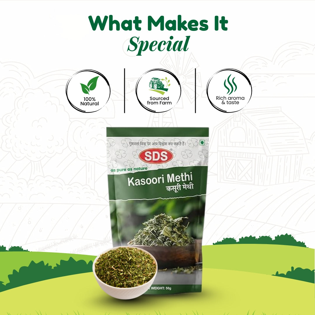 Change your meals into amazing trips, with each plate a masterpiece of flavors that make your senses dance. LetΒ SDS Kasoori Methi Packet be your cooking buddy as you explore new flavors, turning every meal into a fantastic herbal feast. Boost your cooking and let your taste buds have a happy dance!