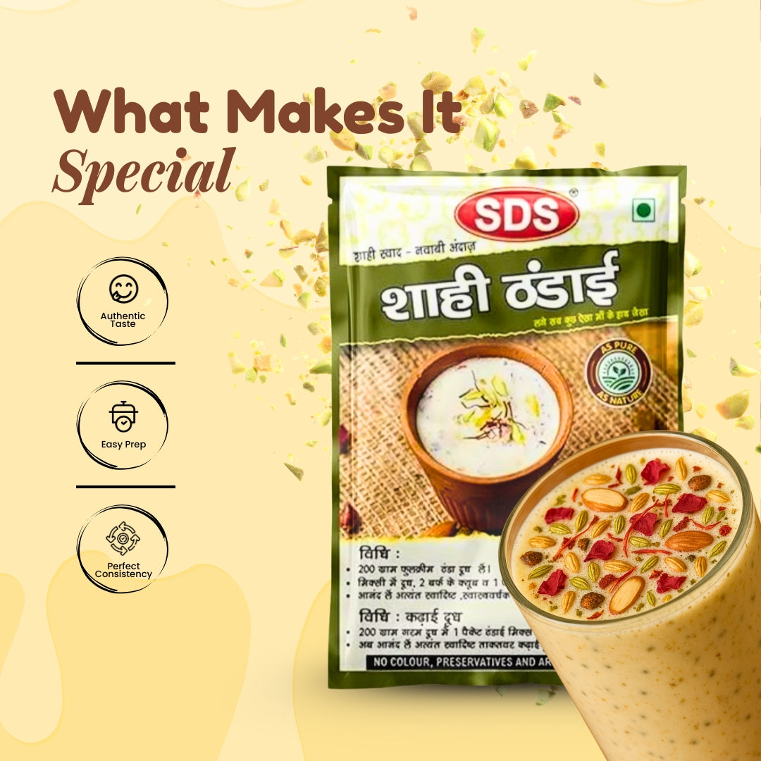 Indulge in the royal flavours of Shahi Thandai Mix, a refreshing drink that will transport you to a world of luxury and bliss. Our premium mix is carefully crafted with the finest ingredients to ensure an authentic and delightful taste.